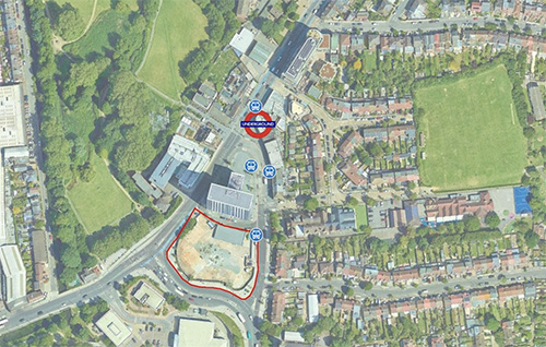 The image below shows the revised proposals from a birds eye view, which includes three buildings, arranged around a central landscaped space with a new diagonal pedestrian route linking the station (north-east) to Wandle Park (south-west).