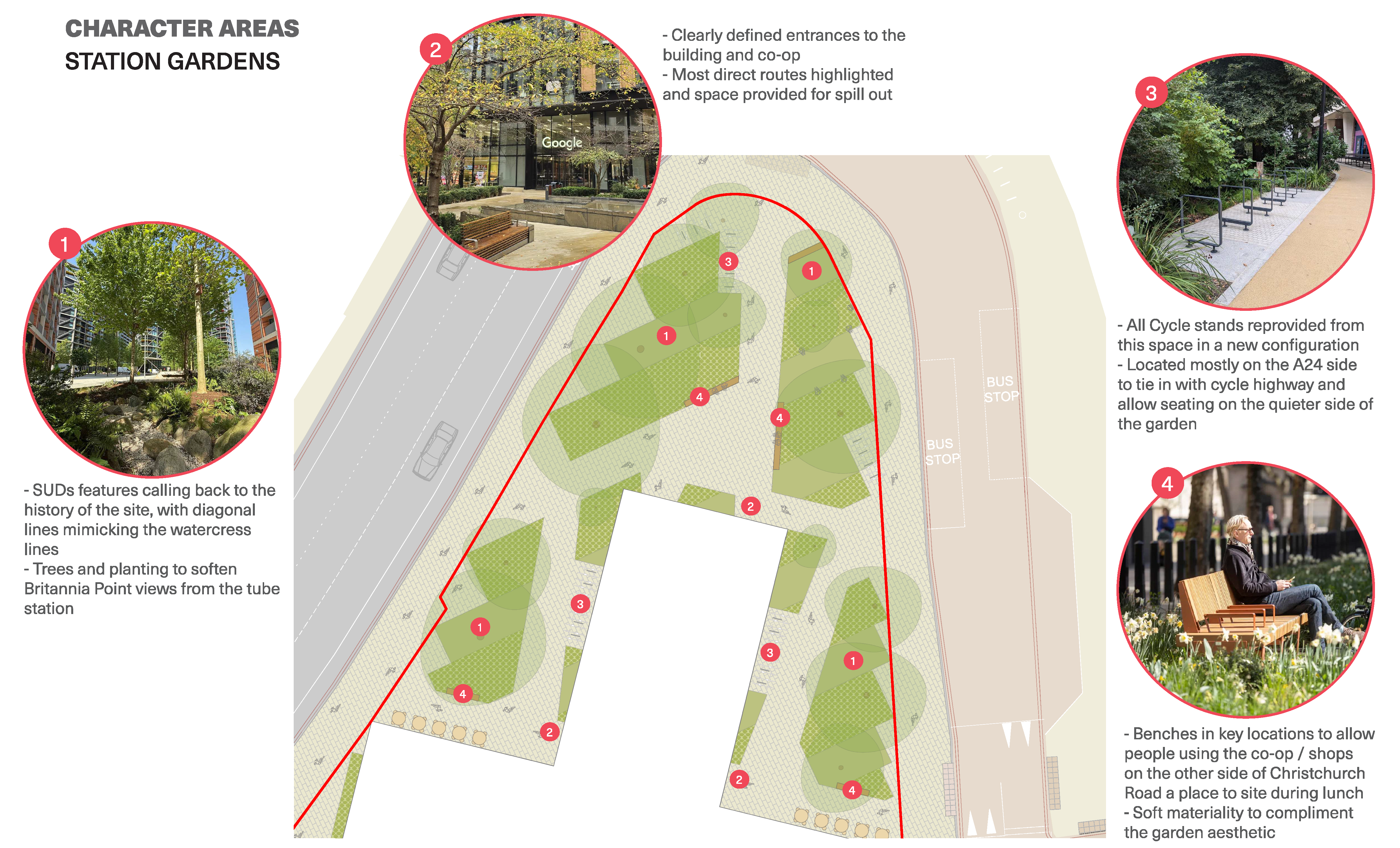 To create a greener and more welcoming public space for Colliers Wood the proposed landscape areas for Colliers Gardens have been designed using a clear set of priorities, these are highlighted below.